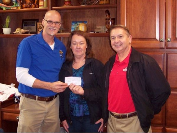 2009 An autocross series was held at the Hartville Flea Market. The EBR presented a donation to Myron Coblenz for a mission in Haiti as appreciation for permitting the autocross. EBR Past Vice President Patricia Hartline, (center) and Walt Soduk, Past President/Secretary (Rt), Myron Coblenz (Left).