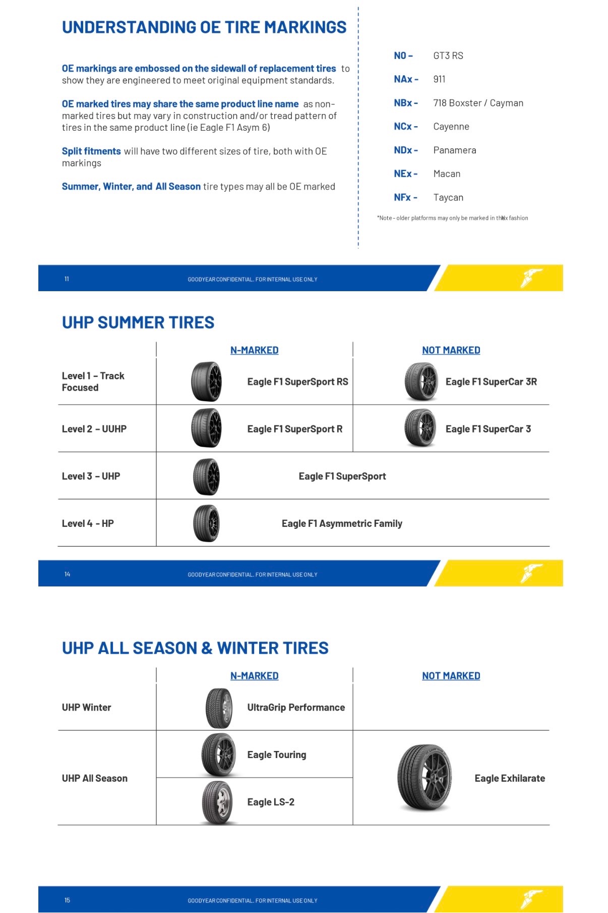 OE marked tires may share the same product line name as non-marked tires but may vary in construction and or tread pattern of tires in the same product line (ie Eagle F1 Asym 6).